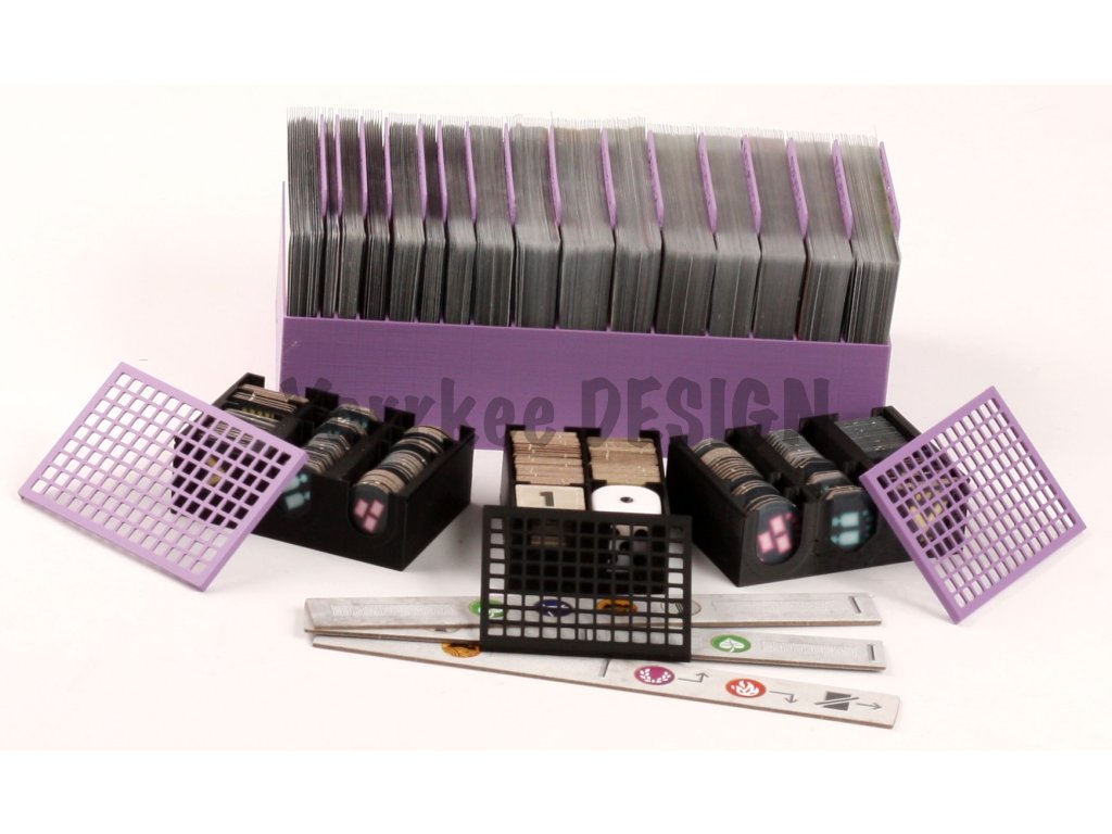 Při koupi obou inzertů se vám do jedné krabice vejdou všechny obalené karty, všechny žetony materiálu, populace a rozvoje, a jedna sada žetonů akcí, vyčerpání, pozic a 1 šestistěnná kostka. Zkrátka vše co potřebujete pro hru 1-4 hráčů.