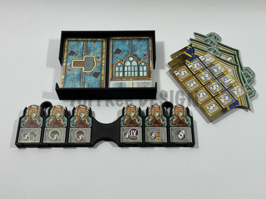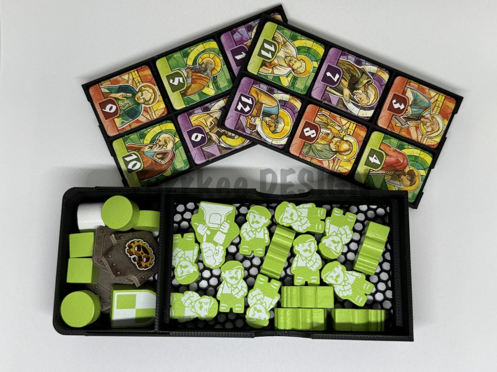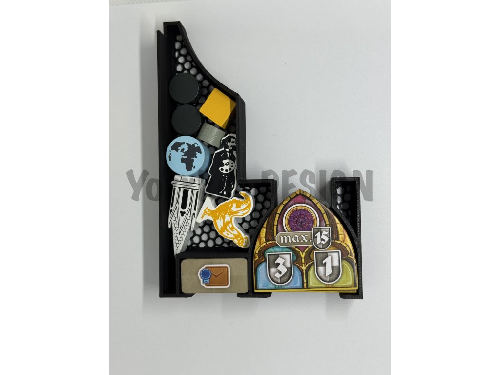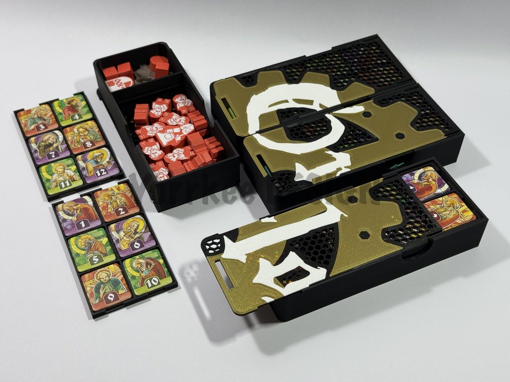 - Součástí insertu je vložka pro spojení tří části herní desky, mřížka na apoštoly a mřížka na kalendárium na herní desce které hru zpříjemní